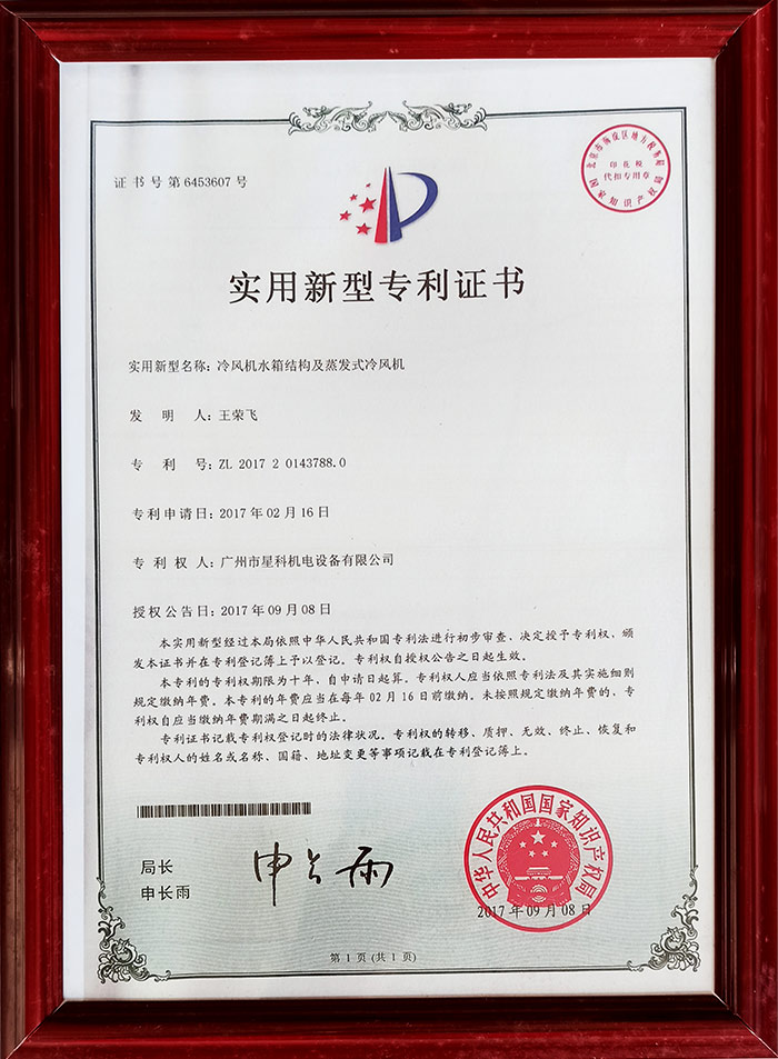 星科實業-冷風機出風口結構及蒸發式冷風機專利